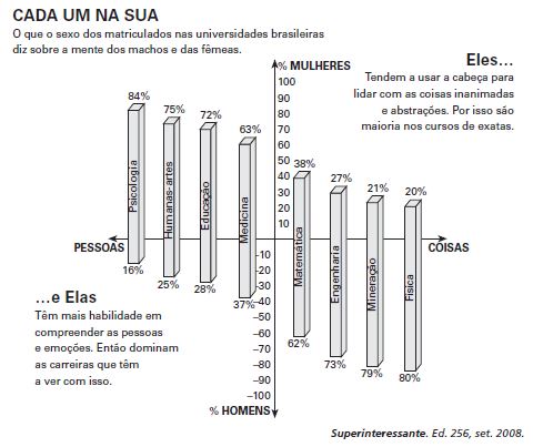 as mulheres estão matriculadas em menor número em Psicologia por sua habilidade de lidarem melhor com coisas que com sujeitos.