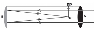 A luz emitida por um astro penetra no telescópio pelo orifício na posição A, reflete no espelho parabólico localizado na posição B, é novamente refletida pelo espelho C em direção às lentes localizadas na ocular do telescópio (local onde o observador aproxima o olho) na posição D. Essa lente forma uma imagem real e maior do objeto observado, um pouco à frente de D. Por isso, o observador não deve encostar seus olhos na lente para enxergar essa imagem.