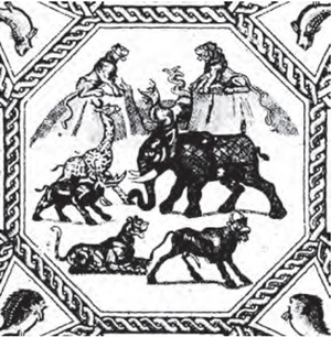 A figura apresentada é de um mosaico, produzido por volta do ano 300 d.C., encontrado na cidade de Lod, atual Estado de Israel. Nela, encontram-se elementos que representam uma característica política dos romanos no período, indicada em:
