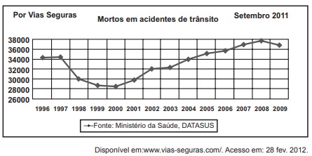 O gráfico divulgado pela Associação por Vias Seguras traça objetivamente, a partir de dados do Ministério da Saúde, um histórico do número de vítimas fatais em decorrência de acidentes de trânsito no Brasil ao longo de catorze anos. As informações nele dispostas demonstram que o número de vítimas fatais