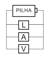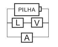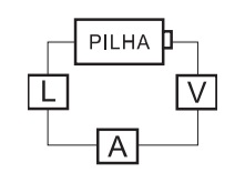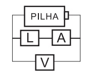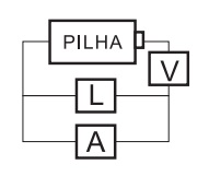 Um eletricista precisa medir a resistência elétrica de uma lâmpada. Ele dispõe de uma pilha, de uma lâmpada (L), de alguns fios e de dois aparelhos: um voltímetro (V), para medir a diferença de potencial entre dois pontos, e um amperímetro (A), para medir a corrente elétrica.