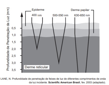 A profundidade de até 2 mm em que o tratamento cutâneo é eficiente se justifica porque a luz de