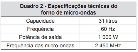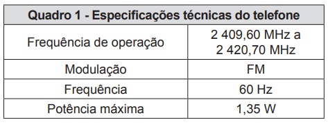 Os fornos domésticos de micro-ondas trabalham com uma frequência de ondas eletromagnéticas que atuam fazendo rotacionar as moléculas de água, gordura e açúcar e, consequentemente, fazendo com que o alimentos sejam aquecidos. Os telefones sem fio também usam ondas eletromagnéticas na transmissão do sinal. As especificações técnicas desses aparelhos são informadas nos quadros 1 e 2, retirados de seus manuais.