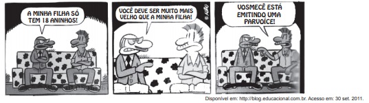 As variações e as mudanças nas línguas estão correlacionadas a fatores sociais. Na tira, a dedução do pai da garota é confirmada e gera o efeito de humor, pois seu interlocutor apresenta um vocabulário