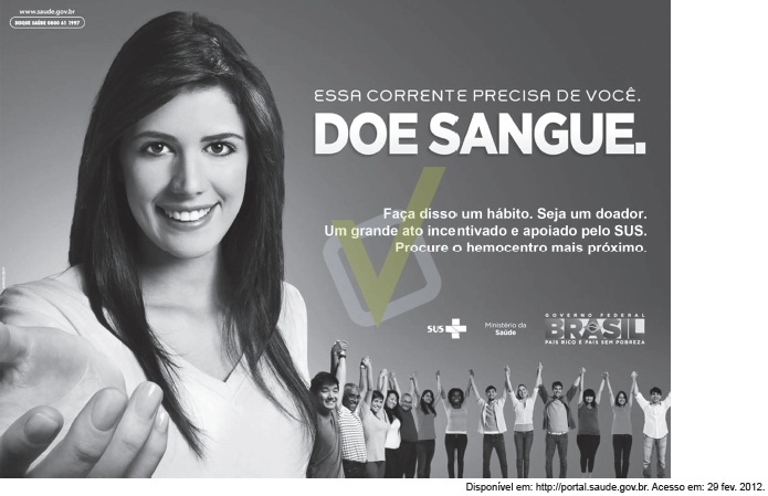 As propagandas fazem uso de diferentes recursos para garantir o efeito apelativo, isto é, o convencimento do público em relação ao que apresentam. O cartaz da campanha promovida pelo Ministério da Saúde utiliza vários recursos, verbais e não verbais, como estratégia persuasiva, dentre os quais se destaca