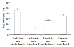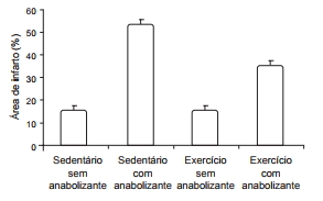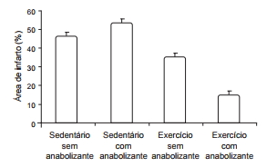Os efeitos do exercício físico na redução de doenças cardiovasculares são bem conhecidos, aumentando, por exemplo, a tolerância a infartos em comparação com indivíduos sedentários. Visando ganho de força, de massa muscular e perda de gordura, verifica-se o uso de anabolizantes por alguns esportistas. Em uma pesquisa com ratos, confirmou-se a melhora da condição cardíaca em resposta ao exercício, mas verificou-se que os efeitos benéficos do exercício físico são prejudicados pelo uso de anabolizantes, como o decanoato de nandrolona, aumentando a área cardíaca afetada pelo infarto.