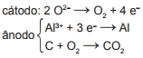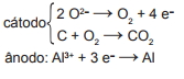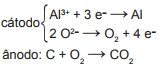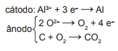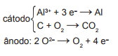 Na etapa de obtenção do alumínio líquido, as reações que ocorrem no cátodo e ânodo são: