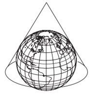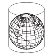A ONU faz referência a uma projeção cartográfica em seu logotipo. A figura que ilustra o modelo dessa projeção é: