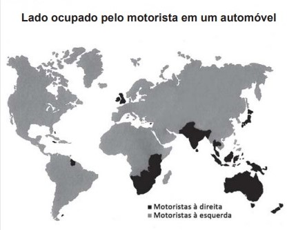 A interpretação da imagem demonstra que a distribuição de países onde se dirige do lado direito coincide, em grande parte, com a zona de influência ou dominação exercida pela