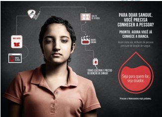Na campanha publicitária, há uma tentativa de sensibilizar o público-alvo, visando levá-lo à doação de sangue. Analisando a estratégia argumentativa utilizada, percebe-se que