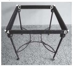 Sabe-se que a base da mesa, considerando a borda externa, tem a forma de um retângulo, cujos lados medem AC = 105 cm e AB = 120 cm.