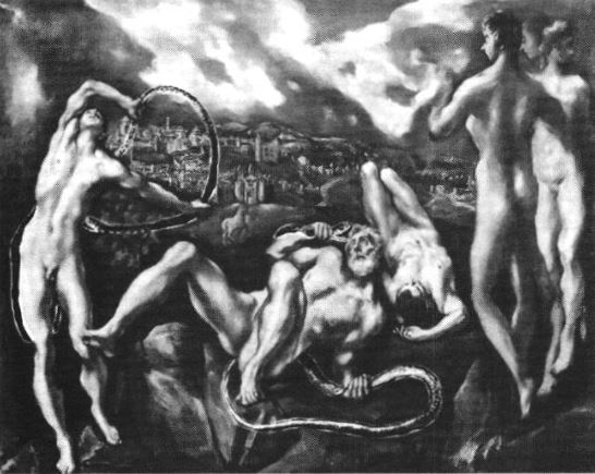 Essa impressionante obra apresenta o sacerdote Laocoonte sendo punido pelos deuses por tentar alertar os troianos da ameaça do Cavalo de Troia, que escondia um grupo de soldados gregos. Enviadas pelos deuses, serpentes marinhas são vistas matando Laocoonte e seus dois filhos como forma de punição.