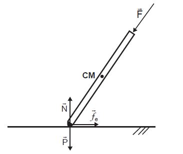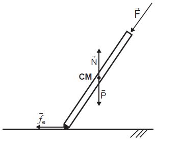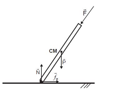 paralela à muleta, varia-se lentamente o ângulo entre a muleta e a vertical, até o máximo ângulo imediatamente anterior ao de escorregamento, denominado ângulo crítico. Esse ângulo também pode ser calculado a partir da identificação dos pontos de aplicação, da direção e do sentido das forças peso , normal e de atrito estático .