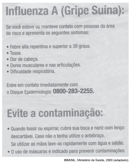 orientando a população sobre os sintomas da gripe suína e procedimentos para evitar a contaminação.